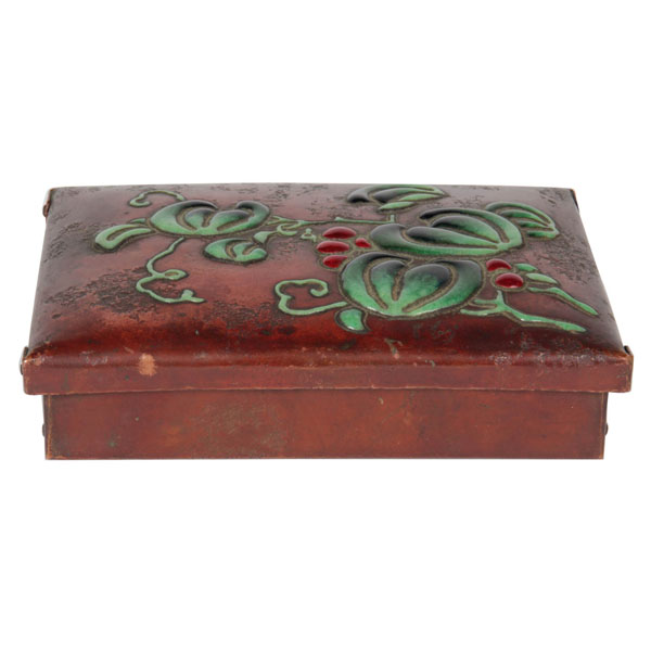 Early warty hammered copper bulbous vase with wrinkled neck, in excellent original dark brown patina with scattered deep red … English art deco rectangular dark yellow shagreen box with a copper latch and trim. This undoubtedly is one of the best handcrafted arts & crafts boxes we ever had the pleasure of offering... This undoubtedly is one of the best handcrafted arts & crafts boxes we ever had the pleasure of offering.
